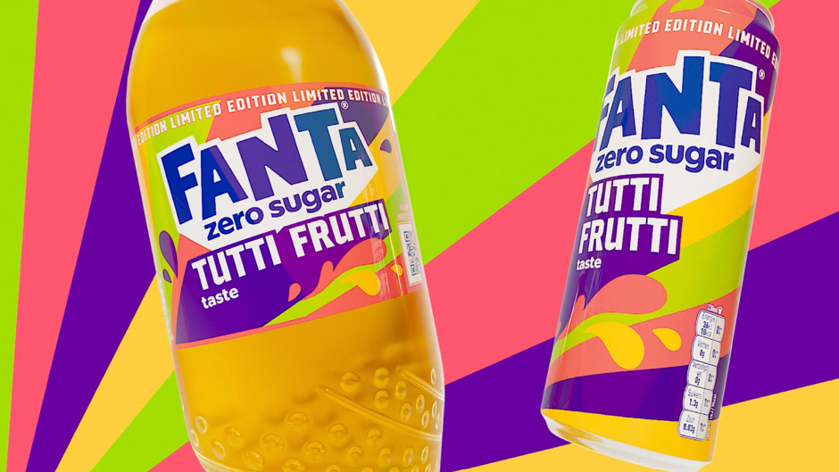 Fanta Tutti Frutti Zero Sugar is een tropische mix van perzik, banaan en ananas. Fris, zoet, verrassend, en ook nog eens volledig suikervrij. Maar hoe vang je zo’n smaakexplosie in een design? Een verpakking dat eruitziet alsof je het kunt proeven? En omdat het om een limited edition gaat die slechts tijdelijk in het schap ligt, moest het ontwerp direct de aandacht grijpen.