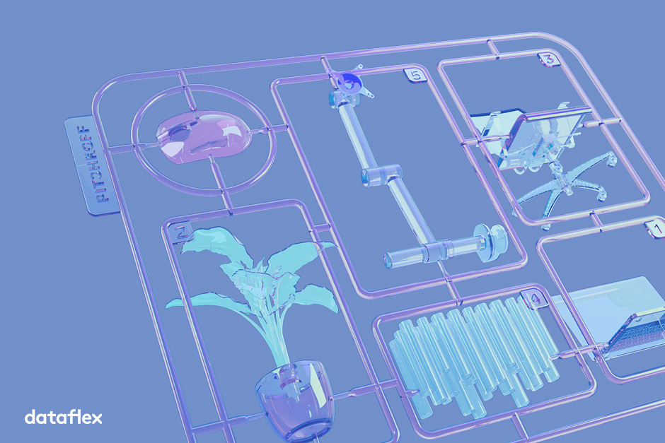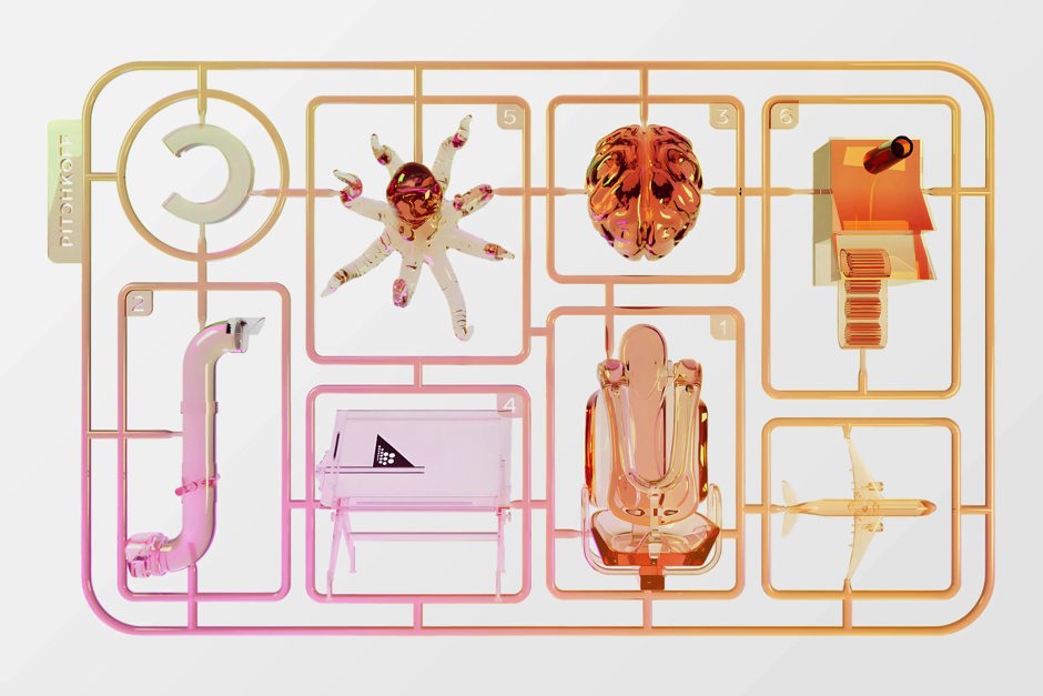 Het Pitchkoff-team bestaat, net als wij, uit nieuwsgierige en creatieve geesten, wat ons extra motiveerde om onderscheidende visuele elementen te creëren. Geïnspireerd door hun expertise bedachten we een speels visueel concept: een 3D sprue, een knipoog naar bouwpakketten.