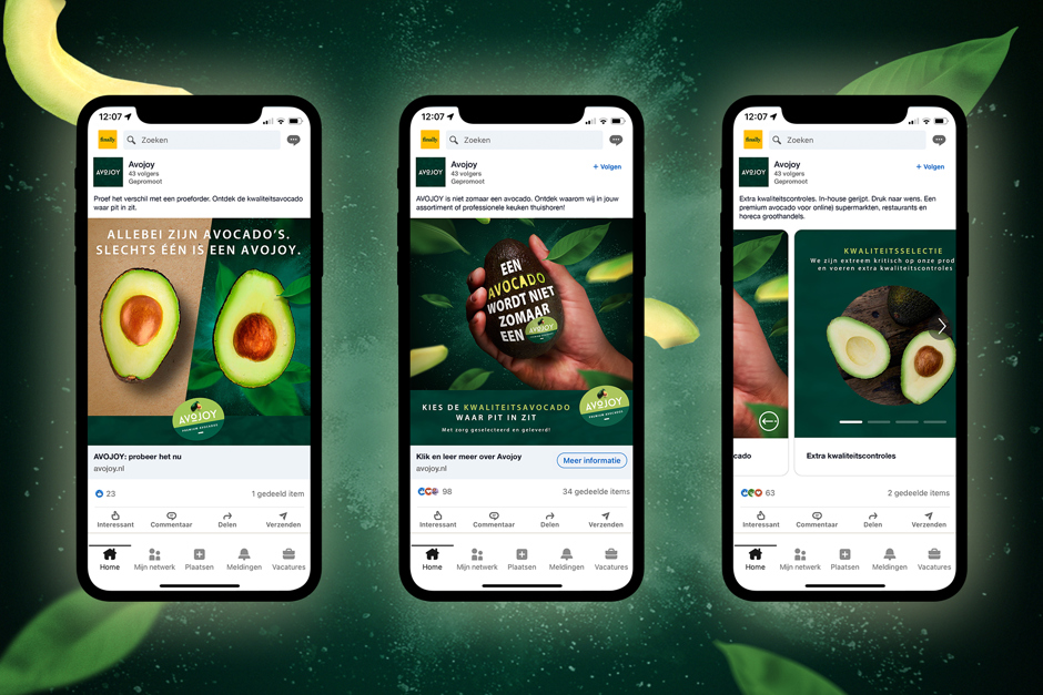 Avocado’s zijn razend populair maar er is nog ruimte om de kwaliteit te verbeteren. Daar springt het nieuwe merk Avojoy op in. Dankzij farms over de hele wereld, strenge kwaliteitscontroles en ongekende service komen alleen de beste avocado’s bij de klant terecht. Aan ons de uitdaging om deze disruptor vorm te geven.